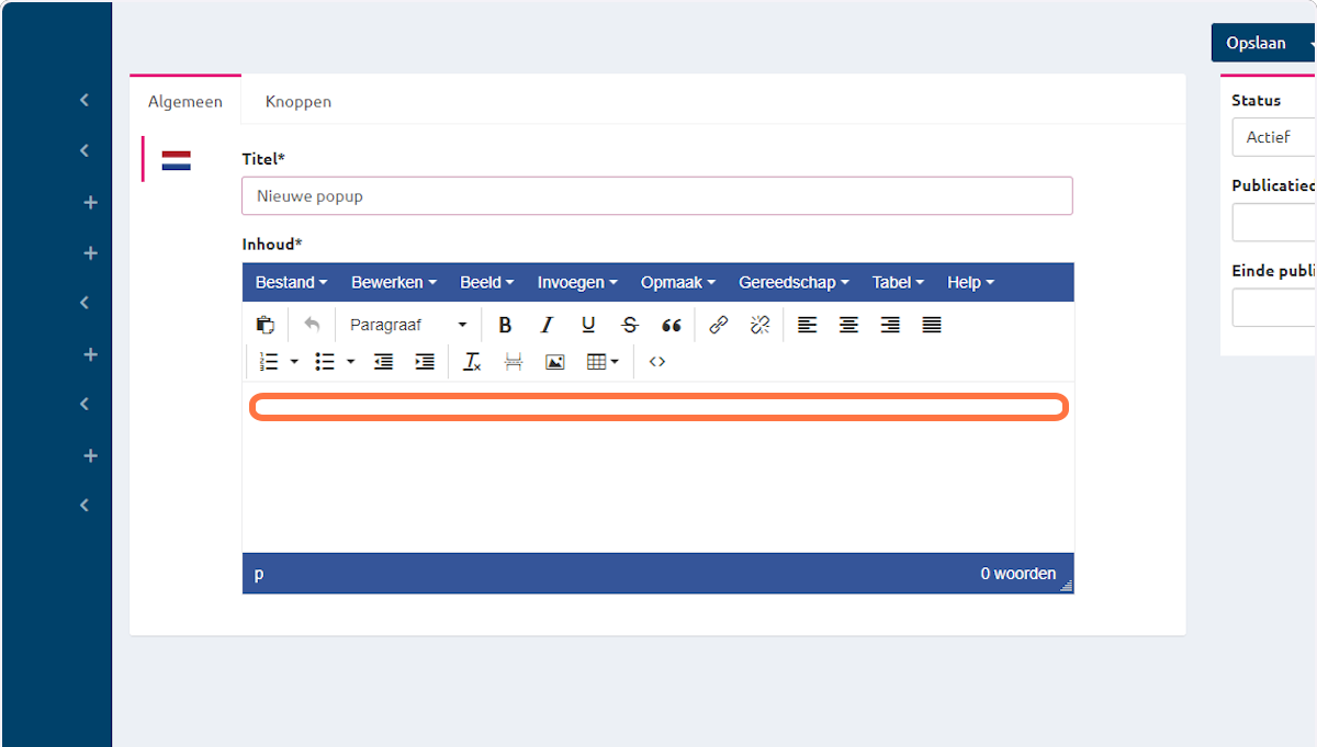 In de teksteditor kan je een beschrijving typen