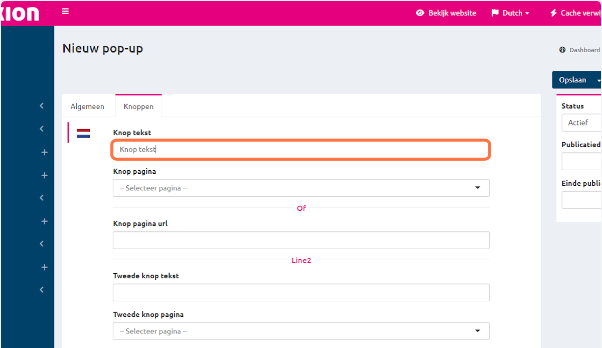 In het veld "Knop tekst" kan je een button tekst typen