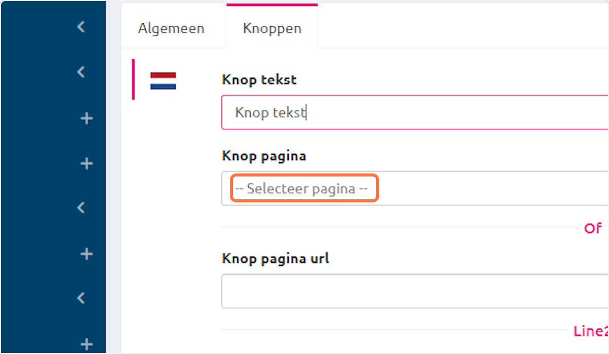 Bij knop pagina link je pagina aan de knop